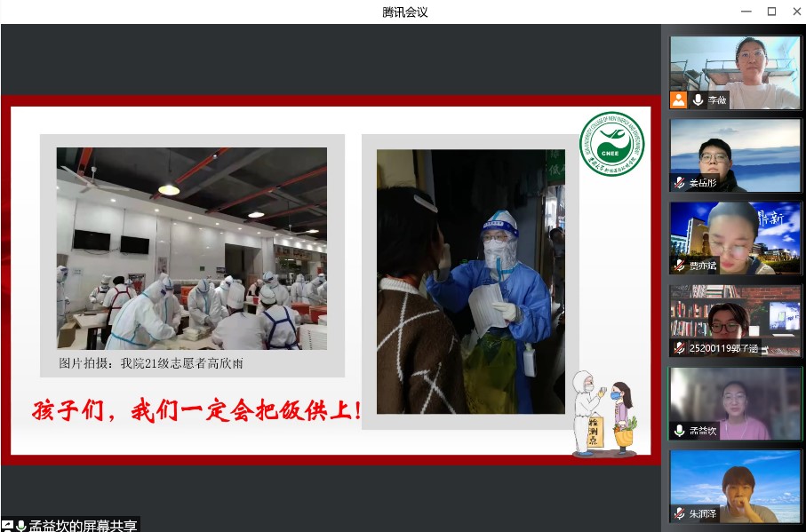 刘晓昌介绍了公司在疫情防控方面所做的努力,专门成立了多个工作组来保证同学们的生活、学习等各个方面的正常运行。他对支部党员志愿者勇于担当的精神提出了表扬和鼓励。他指出,员工党员要从思想上加深认识,积极配合公司疫情防控工作,用自己的行动践行入党誓词。最后,他嘱咐同学们做好个人防护,期待与大家早日在开放的校园相聚。